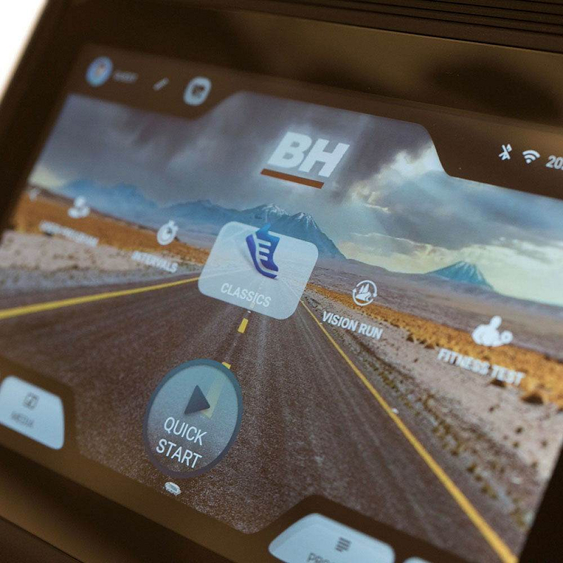 Součástí rotopedu BH FITNESS Carbon Bike RS Multimedia je 10" dotykový počítač se zabudovanými aplikacemi, s držákem na tablet/smartphone, senzory pro měření tepové frekvence, vyrovnávače nerovnosti, transportní kolečka a držák na lahev. Počítač navíc díky technologii i.Concept 3.0 FTMS komunikuje s nejmodernějšími tréninkovými aplikacemi.