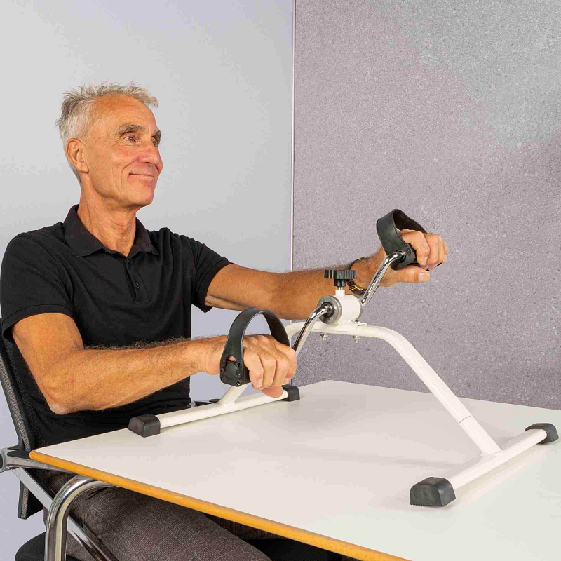 Mini bike Basic TUNTURI umožňuje šlapání nejen dolními, ale i horními končetinami. Stačí minibike postavit na stůl a zapojit ruce podobným pohybem jako při rotopedu. Tento způsob cvičení je ideální pro posílení ramenního pletence, předloktí a zlepšení mobility v oblasti horních končetin