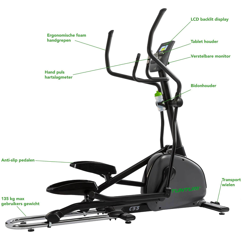 | Měřené hodnoty: | Spálené kalorie, Tep srdce, Čas šlapání, Rychlost, Ujetá vzdálenost, Frekvence otáček, Signalizace překročení tepu, Zobrazení zátěže na displeji |