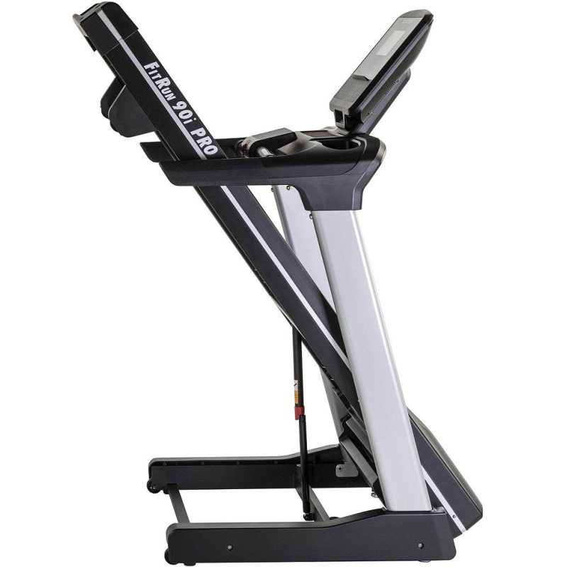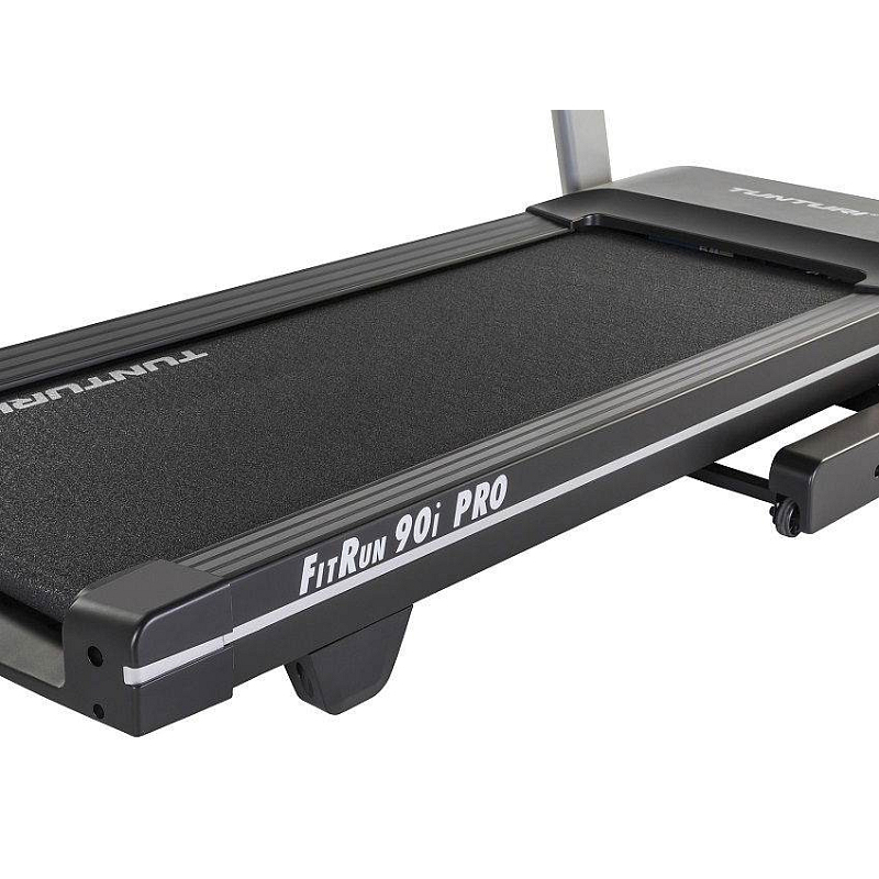 Součástí trenažéru Tunturi FitRun 90i je počítač s programy, USB portem pro napájení, Bluetooth zařízením pro připojení tréninkové aplikace Tunturi routes. Dále je vybaven transportními kolečky pro snadnou manipulaci a vyrovnávači nerovnosti pro maximální stabilitu. Běžecký pás je možné složit do vertikální polohy.