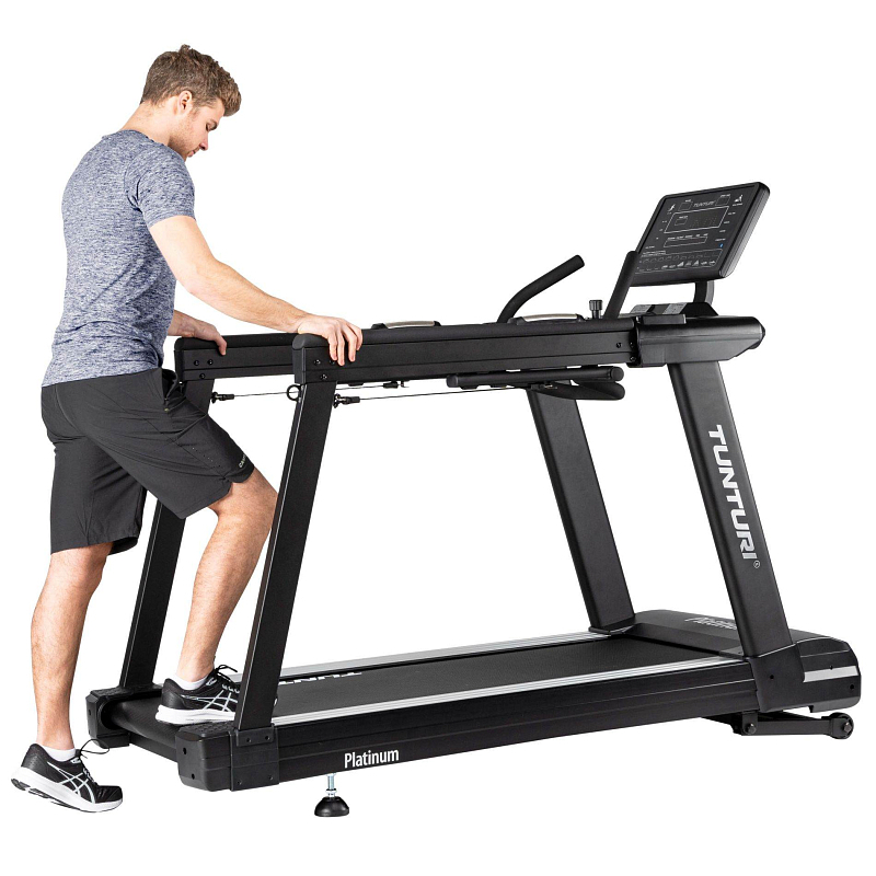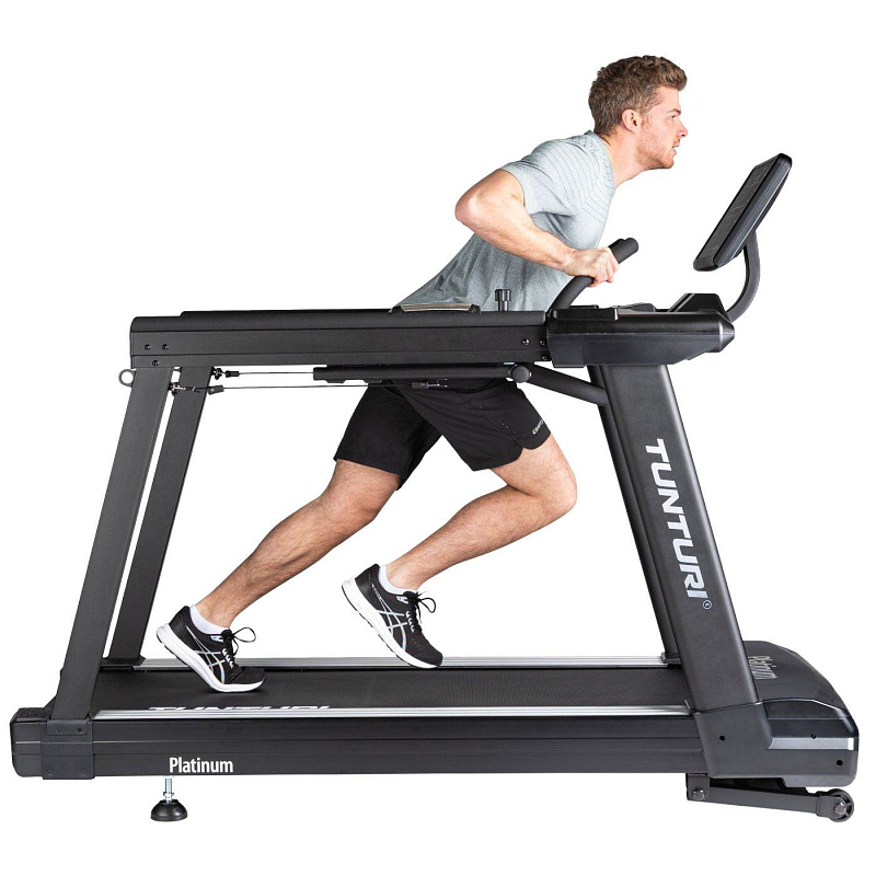 Běžecký pás Tunturi Platinum T30 Core je jedinečný, profesionální běžecký pás s mnoha různými možnostmi tréninku, od běhu až po trénink na saních a rehabilitaci. Jedná se o robustní stroj pro intenzivní používání.