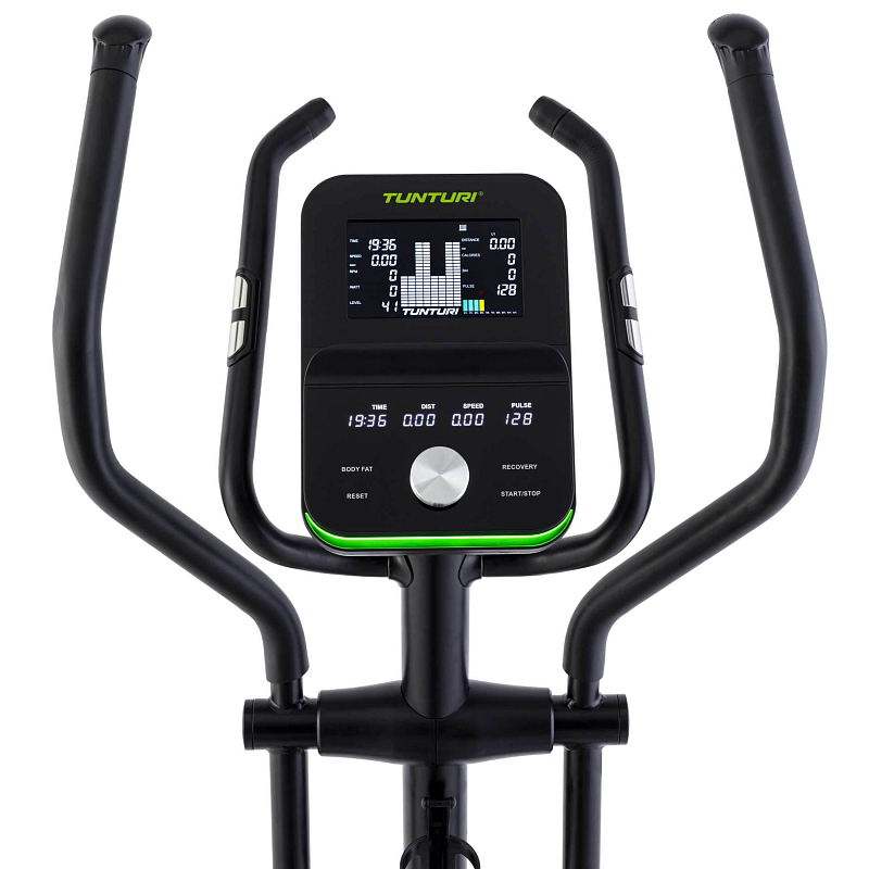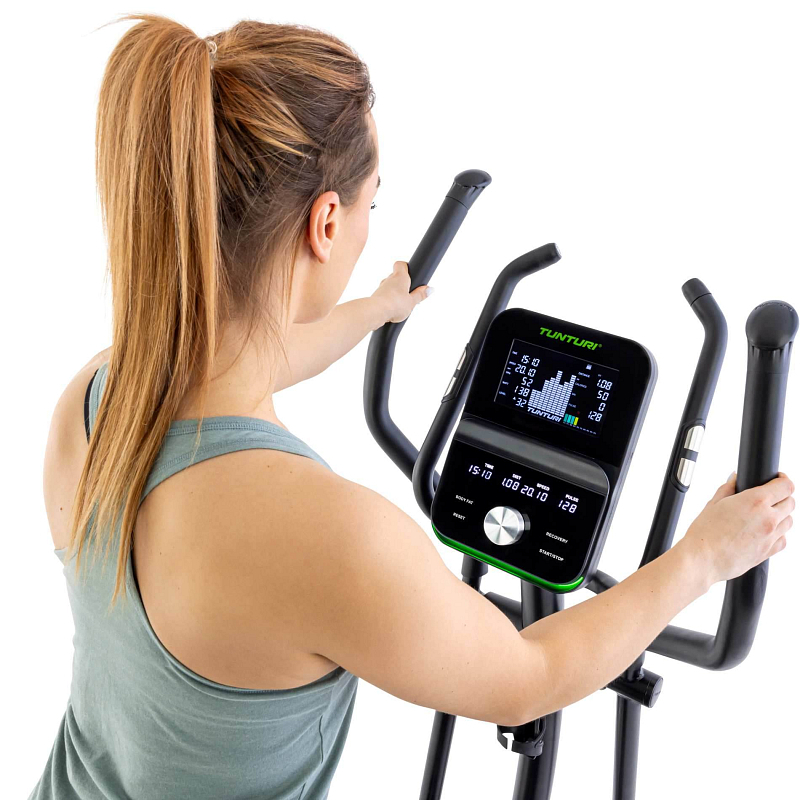 Eliptický trenažér TUNTURI C60 R má 48 úrovní odporu. To znamená, že vždy existuje úroveň odporu, která nejlépe vyhovuje vašim tréninkovým potřebám. Můžete si také vybrat z 26 programů: Můžete si vybrat z 12 předprogramovaných tréninkových profilů, 4 programů řízených tepovou frekvencí, programu podle času, programu podle výkonu a programu podle kalorií, programu podle rychlosti a měření BMI a tuku. Kromě toho můžete nastavit 4 uživatelské programy, zvolit manuální režim a spustit regenerační program s testem kondice - tzv. Recovery. Ten na konci tréninku změří, jak rychle klesá vaše tepová frekvence. Výsledek ukazuje, jak dobrá je úroveň vaší kondice.