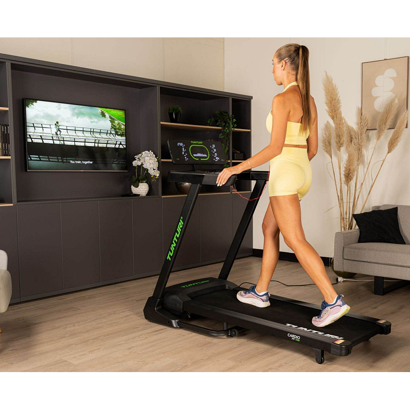 TUNTURI Cardio Fit T50 podporuje připojení k oblíbeným tréninkovým aplikacím – Tunturi Routes, Kinomap, MyHomeFIT a Zwift. Díky nim se běžná chůze nebo běh promění v interaktivní zážitek. Můžete se vydat na virtuální procházku podél pláží, ulicemi světových metropolí nebo přes horské stezky. Aplikace Tunturi Routes je zdarma ke stažení a poskytuje přístup k 15 videotréninkům, které se přizpůsobují vaší rychlosti. Prémiová verze pak nabízí stovky tras po celém světě.