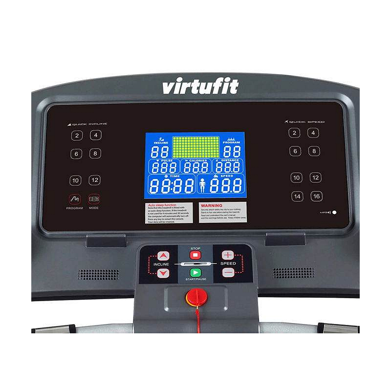 Běžecký pás VIRTUFIT Elite TR-900i je vybaven motorem o max. výkonu 7 HP / trvalý 3 HP s nastavením rychlostí v rozmezí 1 až 20 km/h. Prostorná běžecká plocha o rozměrech 55 x 153 cm. Sklon pásu je možné regulovat do 15 %. Elektronická regulace umožňuje nastavení rychlosti a sklonu pomocí tlačítek umístěných v madlech běžeckého pásu.