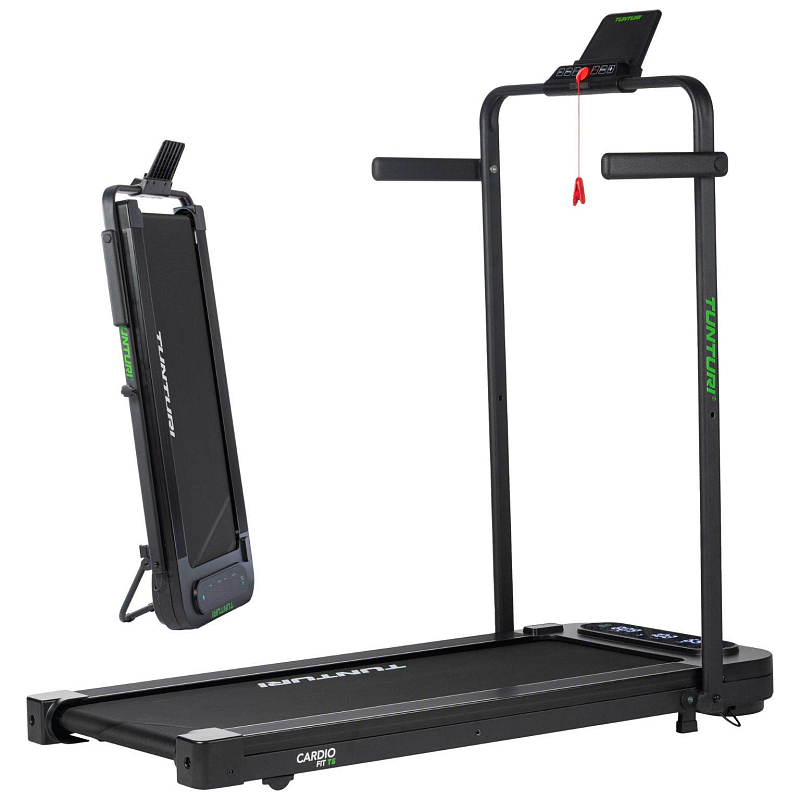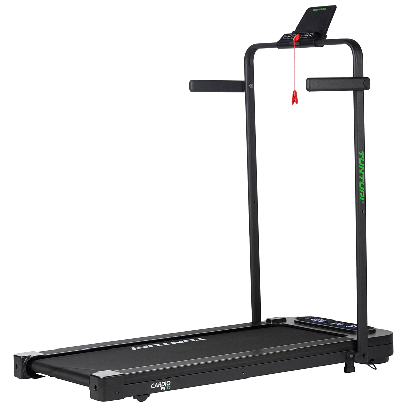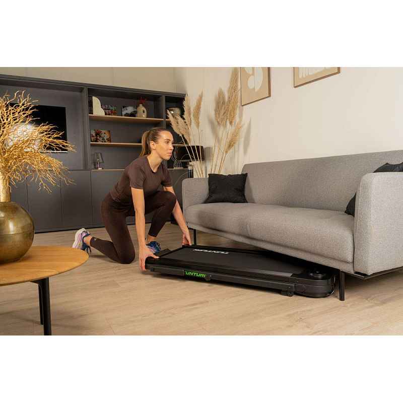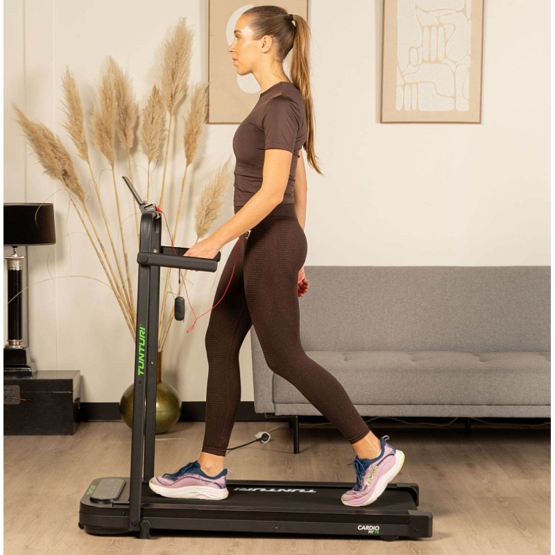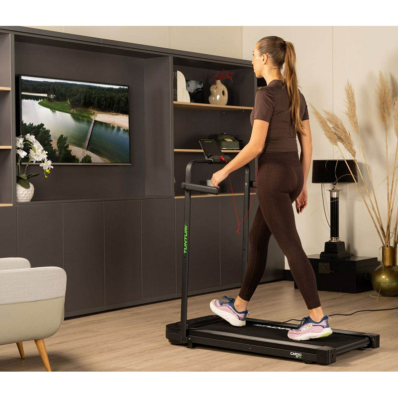 TUNTURI Cardio Fit T5 je ideální volbou pro každého, kdo si chce udržet aktivní životní styl i na malém prostoru. Díky velmi nízkému profilu a možnosti úplného složení ho snadno uložíte pod postel, za skříň nebo pod gauč. Pás nabízí rychlost až 8 km/h, je vybaven komfortním odpružením a tichým motorem, takže si můžete zacvičit kdykoliv, aniž byste rušili okolí. Běžecká plocha o rozměru 100 × 40 cm poskytuje dostatek prostoru pro pohodlnou chůzi nebo pomalý běh.