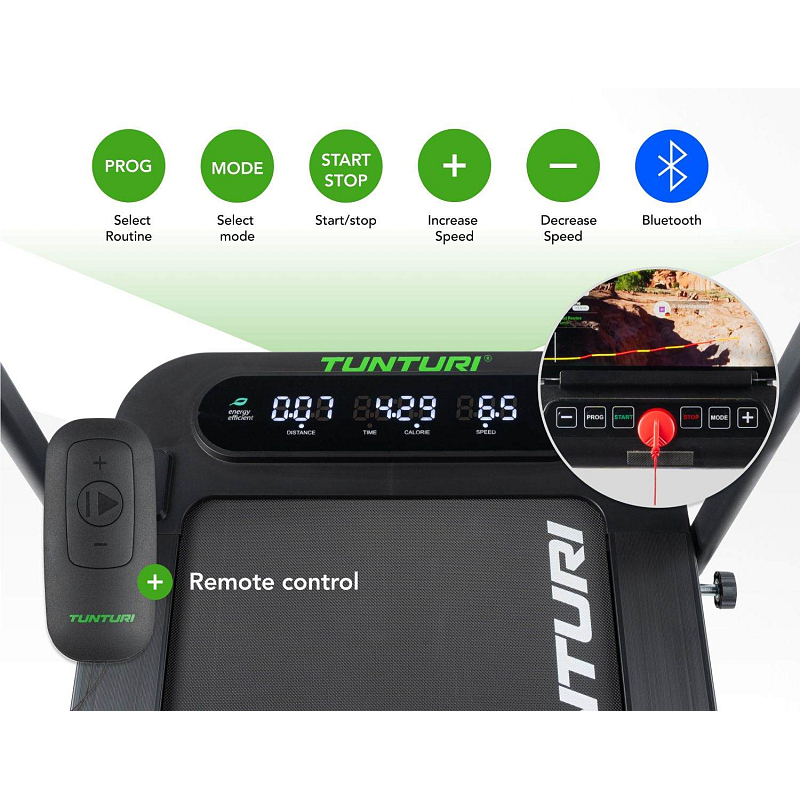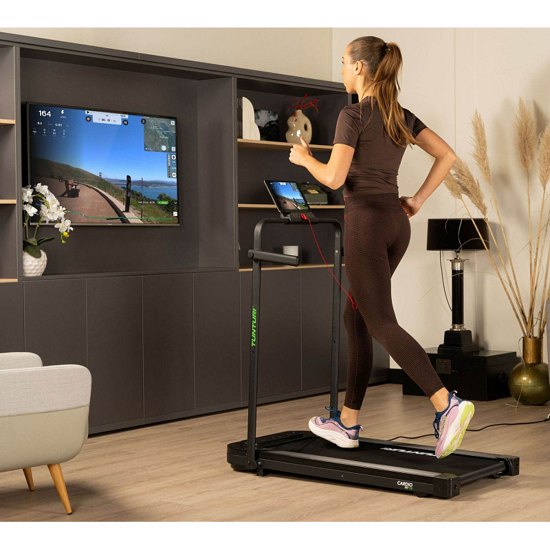 TUNTURI Cardio Fit T5 podporuje připojení k oblíbeným tréninkovým aplikacím – Tunturi Routes, Kinomap, MyHomeFIT a Zwift. Díky nim se běžná chůze nebo běh promění v interaktivní zážitek. Můžete se vydat na virtuální procházku podél pláží, ulicemi světových metropolí nebo přes horské stezky. Aplikace Tunturi Routes je zdarma ke stažení a poskytuje přístup k 15 videotréninkům, které se přizpůsobují vaší rychlosti. Prémiová verze pak nabízí stovky tras po celém světě.