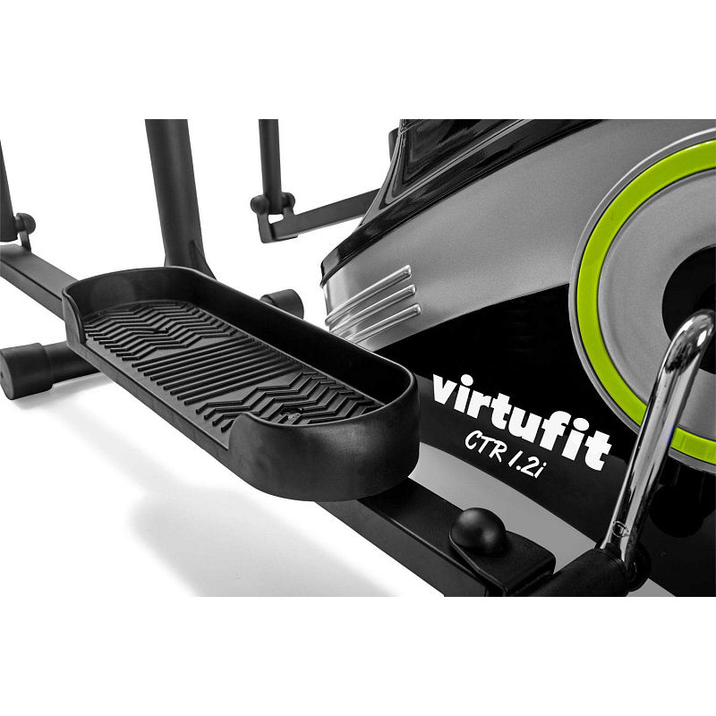 VIRTUFIT CTR 1.2i i je universální rodinný trenažér, který nadchne nejen začátečníky, ale i náročné uživatele. Jeho vyvážený setrvačník o hmotnosti 12 kg zajišťuje tichý a zcela plynulý chod stroje i při maximálním zatížení. Odpor je vytvářen magnetickou brzdou s elektronickou regulací až v 16 úrovních. Délka kroku je univerzální 28 cm a pozici nášlapů lze nastavit, což vám zaručí správný a pohodlný pohyb.
