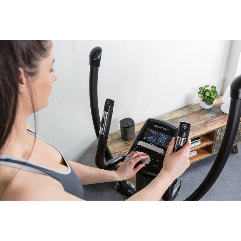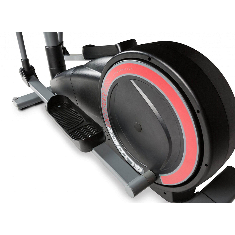 FLOW Fitness DCT2500i je unikátní a vysoce kvalitní crossový trenažér, který je vybaven robustní rámovou konstrukcí, kvalitními komponenty a moderní elektronikou. Vyvážený setrvačník o hmotnosti 18,5 kg zajišťuje tichý a zcela plynulý chod stroje i při maximálním zatížení. Odpor je vytvářen magnetickou brzdou s elektronickou regulací až v 16 úrovních. Délka kroku je univerzální 39 cm a pozice nášlapů je nastavitelná ve 3 polohách, což vám zaručí správný a pohodlný pohyb.