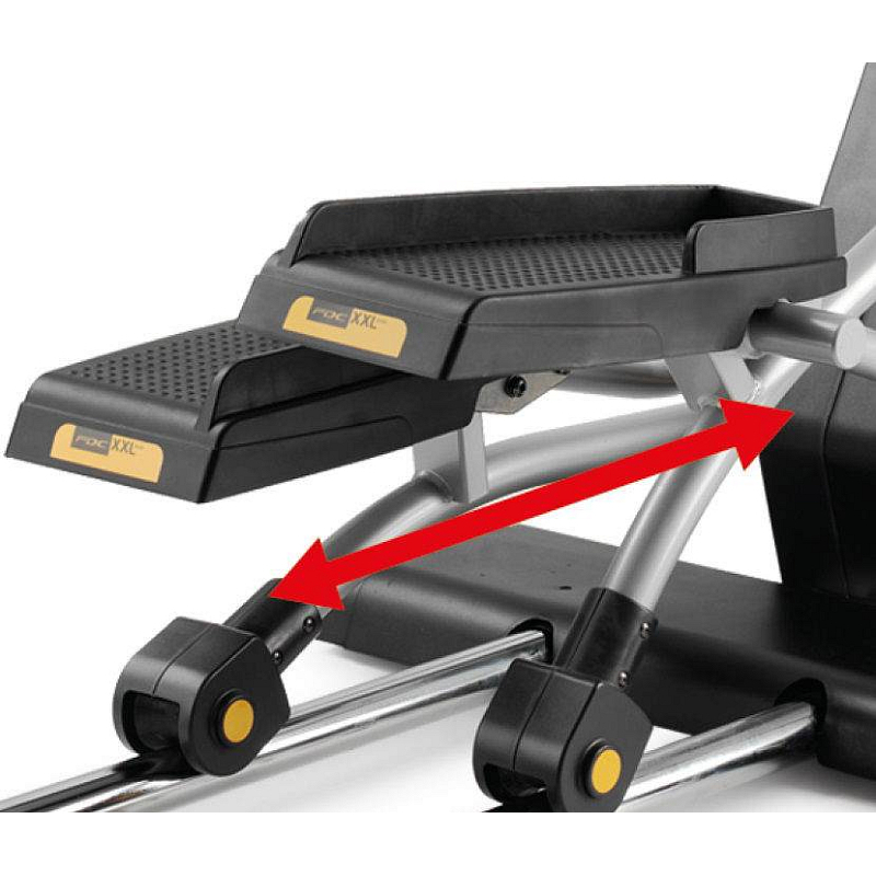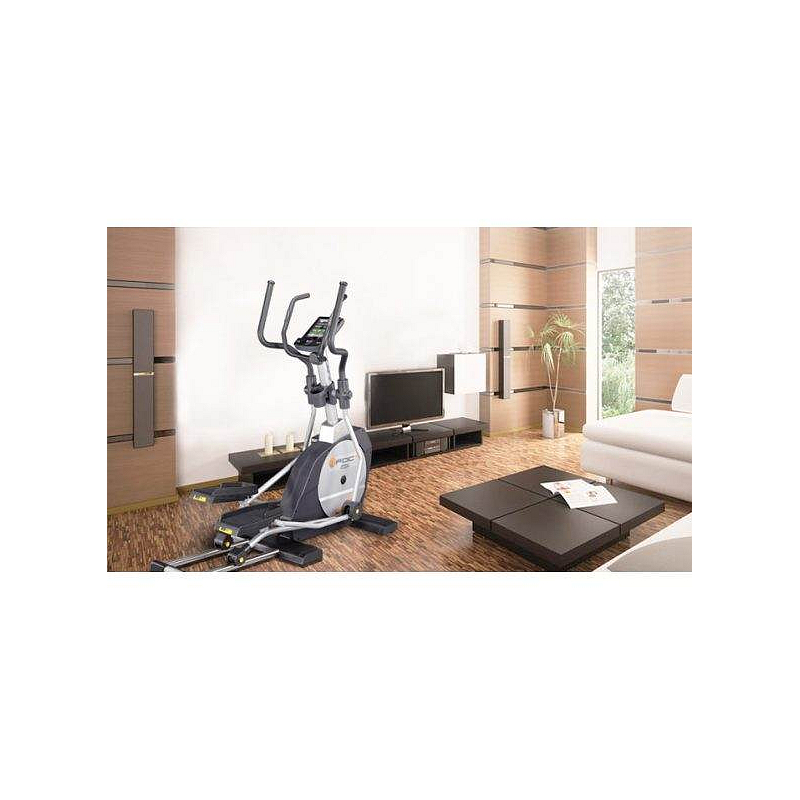 Plynulý a tichý chod zajišťuje systém setrvačníku o hmotnosti 35 kg. Odpor je vytvářen magnetickou brzdou s elektronickou regulací až v 24 úrovních. Délka kroku je univerzální 48 cm a rozteč pedálů je 10 cm.