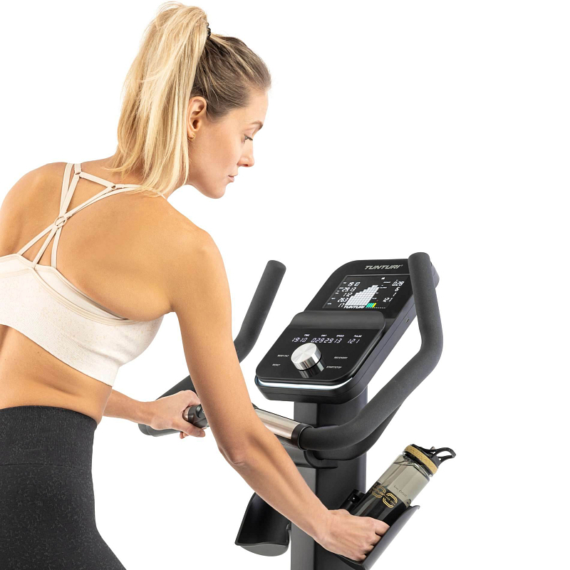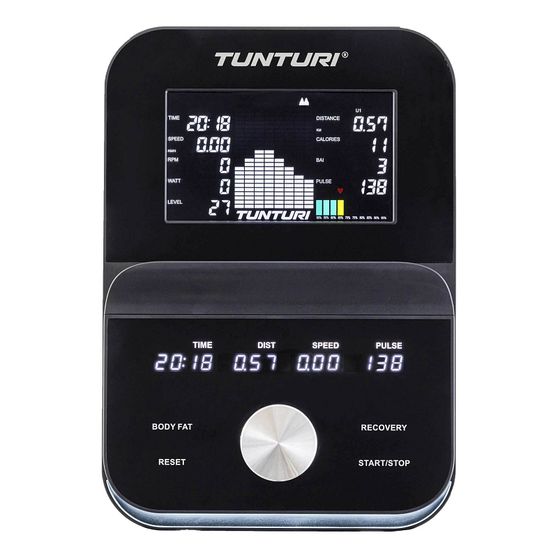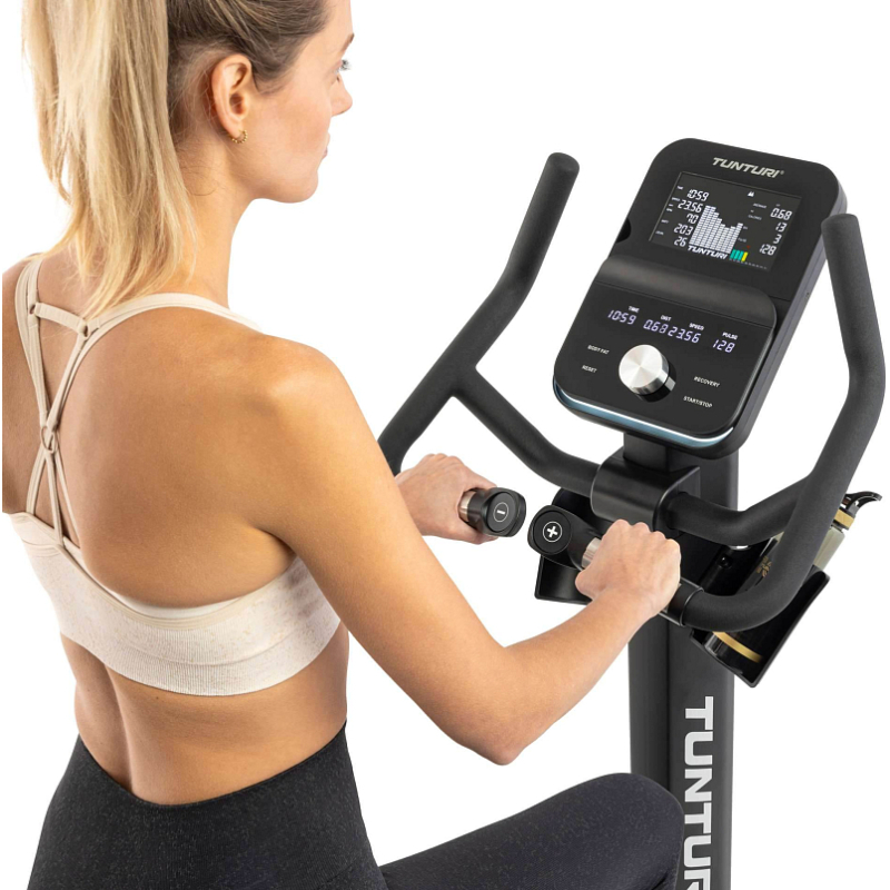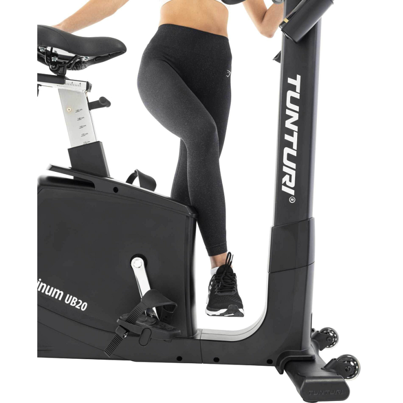 Rotoped TUNTURI PLATINUM E20 se vyznačuje perfektní ergonomií a maximálním pohodlím. To především díky horizontálně a výškově nastavitelnému sedlu, ergonomickým madlům s tlačítky pro ovládání zátěže a komfortním pedálům s nastavitelnými klipsnami.