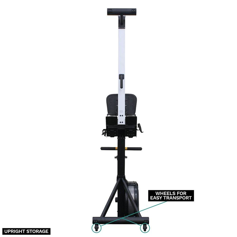 Veslo má robustní ocelový rám pro maximální zátěž a minimální potřebu potřebou na údržbu. Veslovací trenažér má dostatečný rozsah zátěže pro začátečníky i sportovně zaměřené veslaře. Regulaci odporu a proudění vzduchu můžete nastavit v deseti úrovních. Sedadlo Xebex Air Rower je od země 53 cm, je vybaveno extra polstrovanou pěnou s vysokou hustotou a ergonomicky navrženou pro maximální pohodlí při veslování. Pro úsporu místa veslo zvedněte do vertikální polohy. Díky transportním kolečkům ho můžete snadno přemístit na požadované místo.