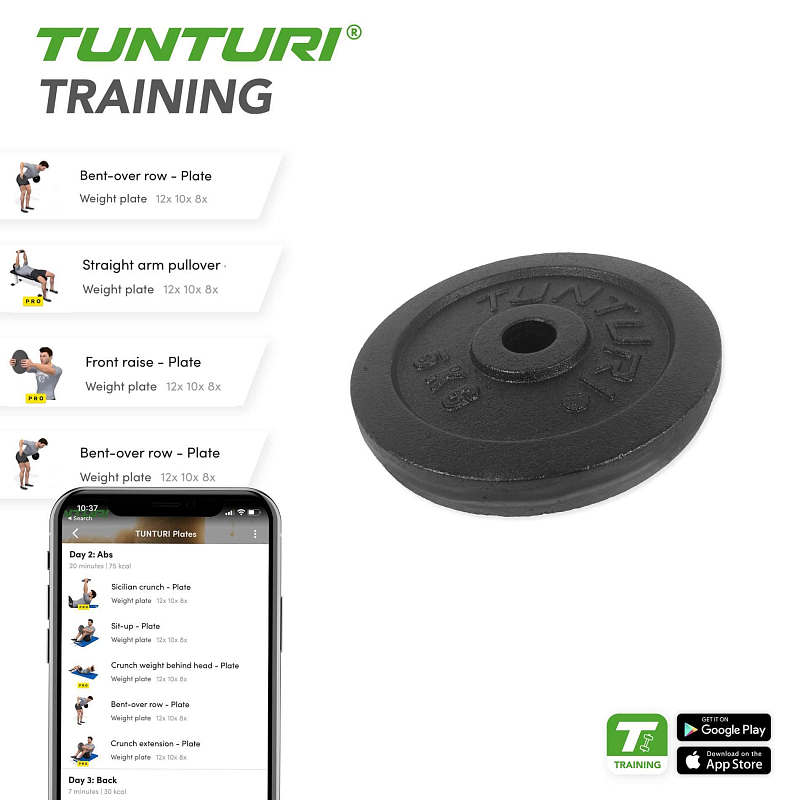 Ať už si chcete navrhnout domácí posilovnu, nebo jste majitelem posilovny, zátěžové desky jsou pro kvalitní trénink nepostradatelné. Se zátěžovou tyčí a závažím můžete provádět nejrůznější cviky na posílení svalů. Vleže, vsedě nebo vestoje. Naše kolekce Tunturi obsahuje tuto zátěžovou desku o hmotnosti 5 kg. Zátěžové desky jsou k dispozici i v jiných hmotnostech, takže si můžete sestavit sadu, která bude vyhovovat vašim potřebám.