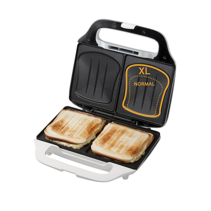 XL sendvičovač vám umožní připravovat si jak velké tak i malé sendviče. Sendvičovač svou velikostí pečící plochy převyšuje běžné sendvičovače i o více než 50% při zachování kompaktních vnějších rozměrů. Vysoký příkon zajišťuje velmi rychlé nahřátí celé plochy na potřebnou teplotu a díky kvalitnímu nepřilnavém povrchu se vám sednviče nikdy nepřipeče. Speciální vytvarování pečící plochy do tvaru mušle pak umožňuje dokonalé propečení sendviče i bez vytlačování obsahu ven na pečící desku. Jistě také oceníte možnost postavit sendvičovač na bok, aby při uložení do police zabral co nejméně místa.