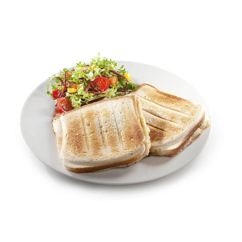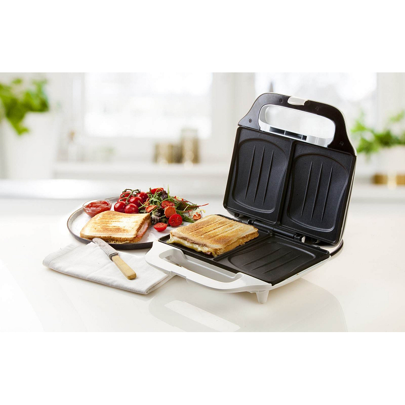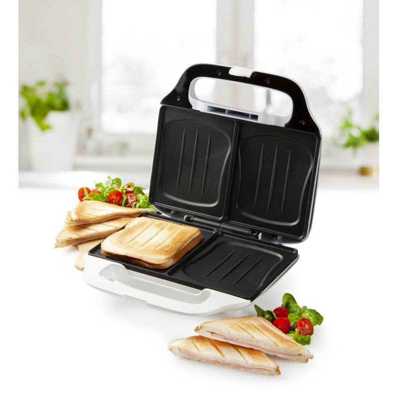 Sendvičovač pro přípravu 4 čtvercových sendvičů.