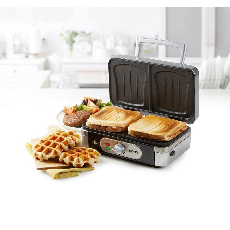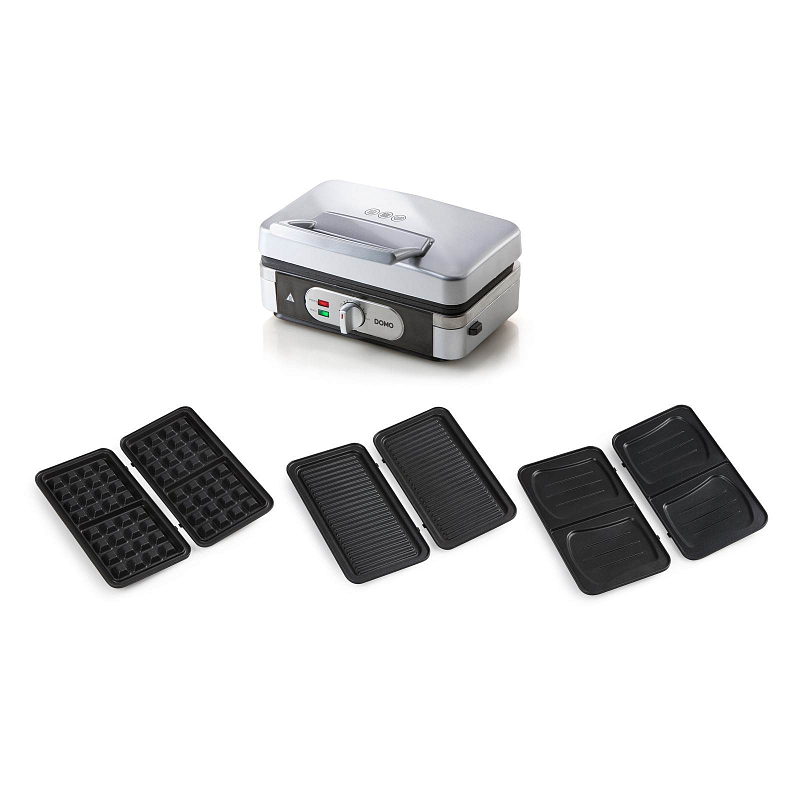 Univerzální pomocník do kuchyně pro přípravu snídaně, zákusku i svačiny. V jednom balení dostanete tři přístroje: sendvičovač, vaflovač a panini gril. Jednotlivé pečící desky jsou snadno vyměnitelné a díky kvalitnímu nepřilnavému povrchu i snadno čistitelné.