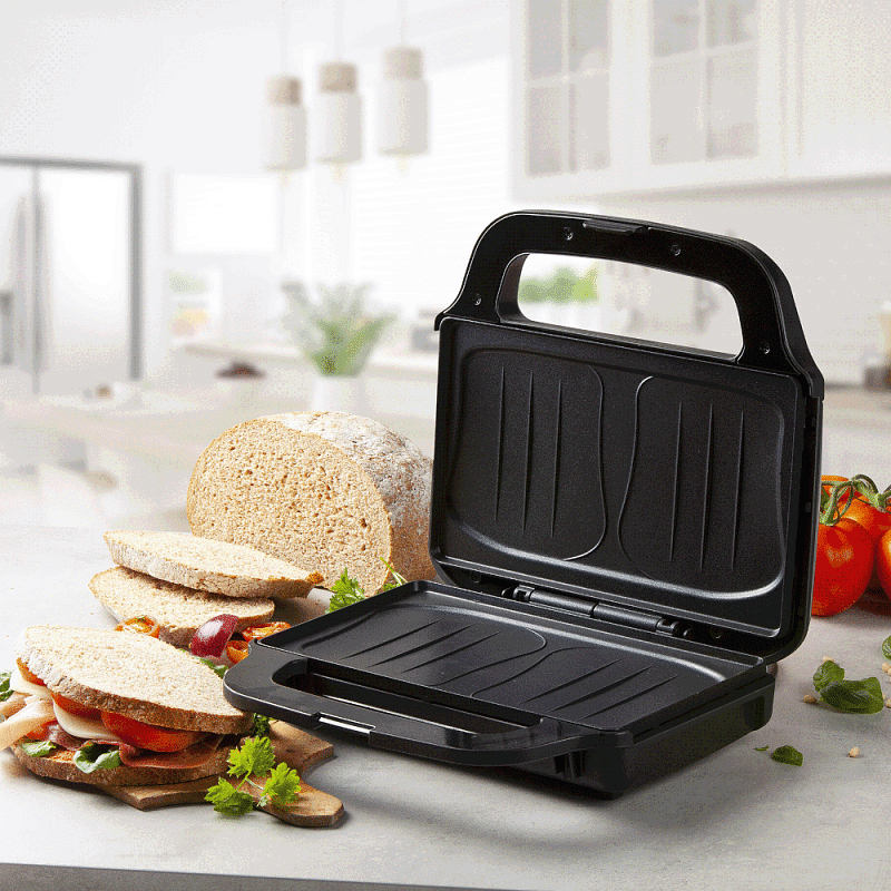 Sendvičovač pro přípravu 4 čtvercových sendvičů.