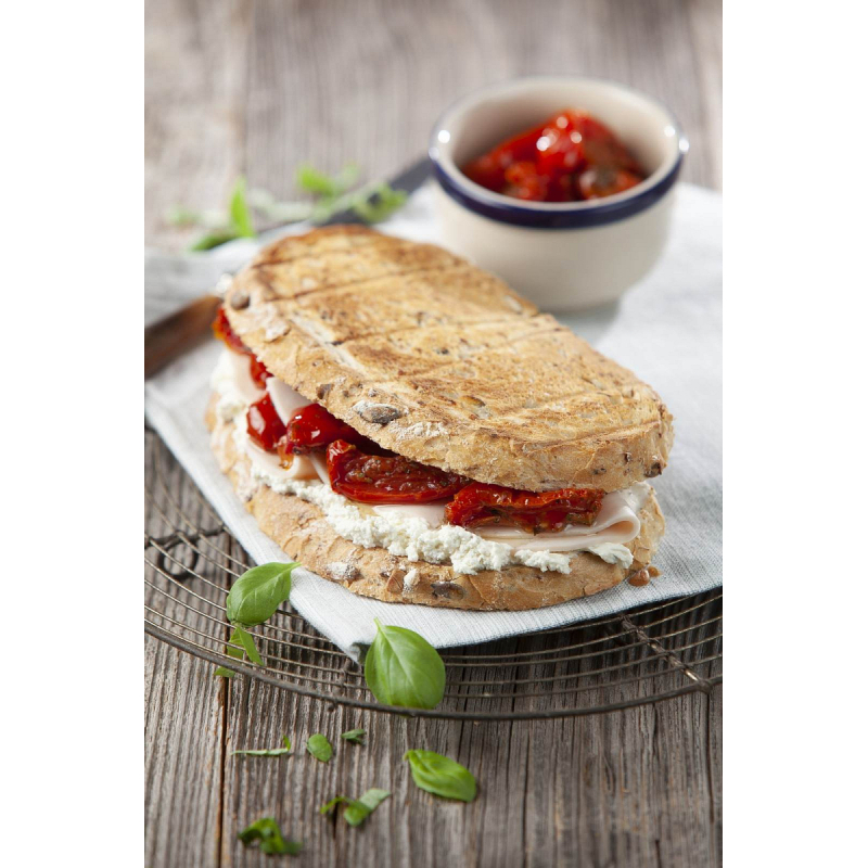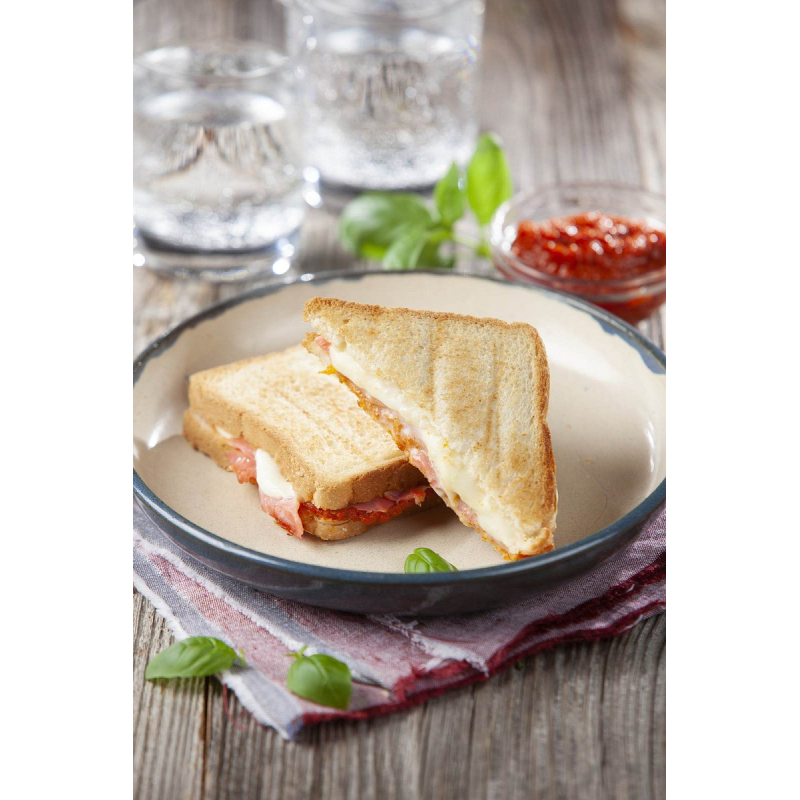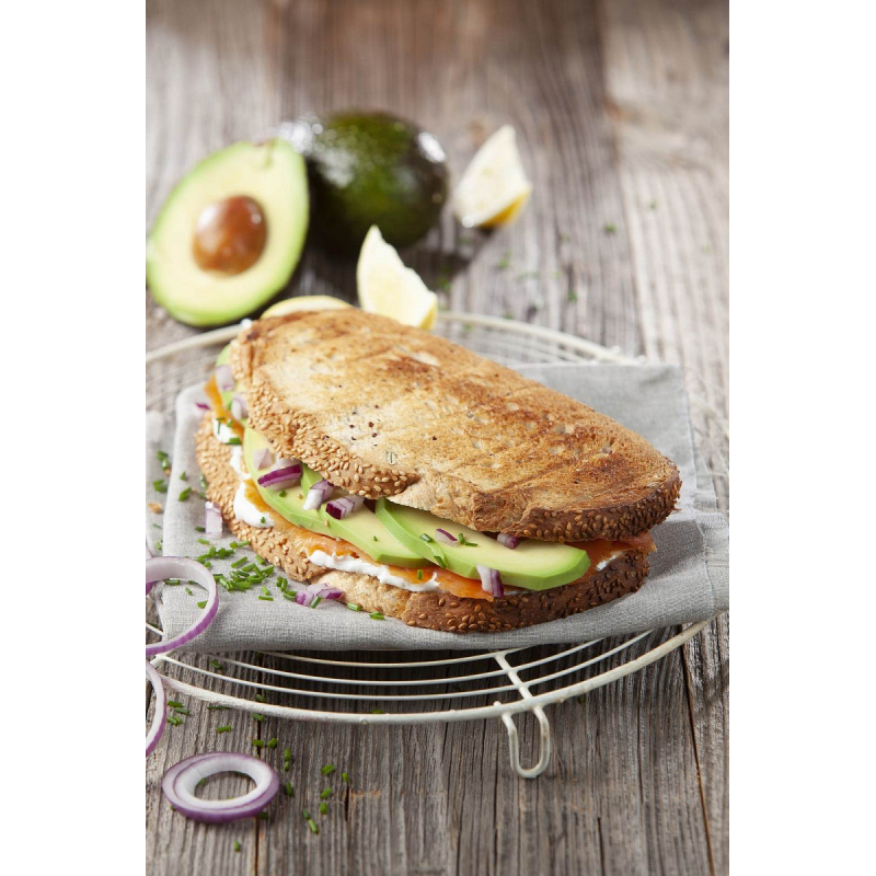 Nerezový sendvičovač na dva velké sendviče, nebo jeden celý krajíc chleba. U sendvičovače nové generace bylo dosaženo lepší izolací vnějšího pláště maximální bezpečnosti při používání a veškeré vnější části přístroje (kromě pečících desek) jsou vždy jen lehce zahřáté. Z přístroje tak neuniká do okolí žádné teplo. Sendvičovač tím šetří energii a zabraňuje možnosti popálení rukou, či poničení kuchyňské linky.