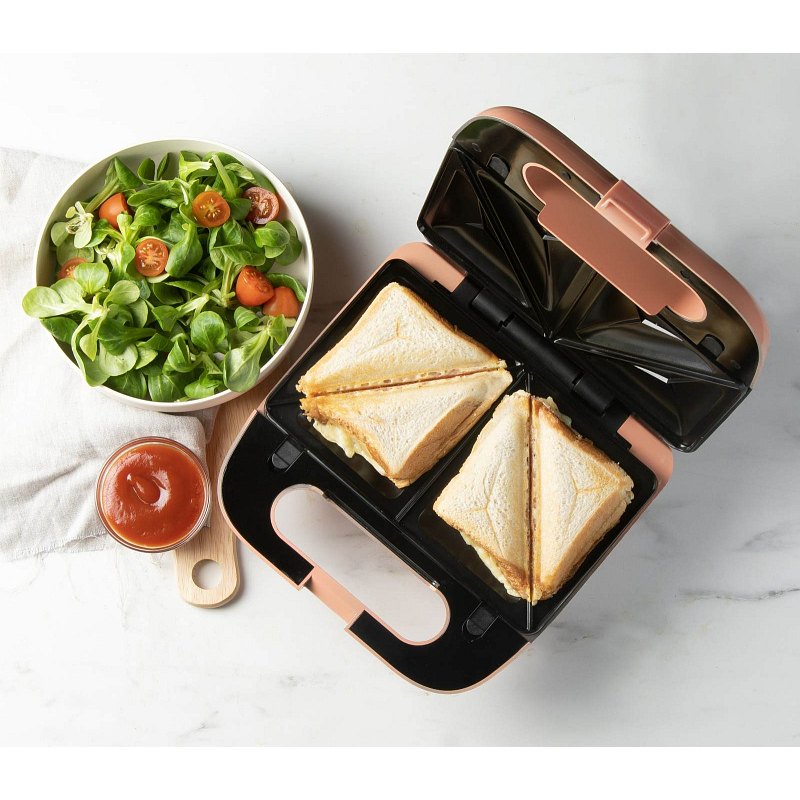 Sendvičovač pro přípravu 4 čtvercových sendvičů.