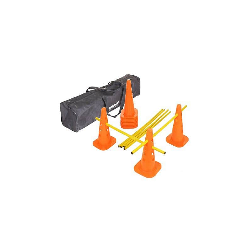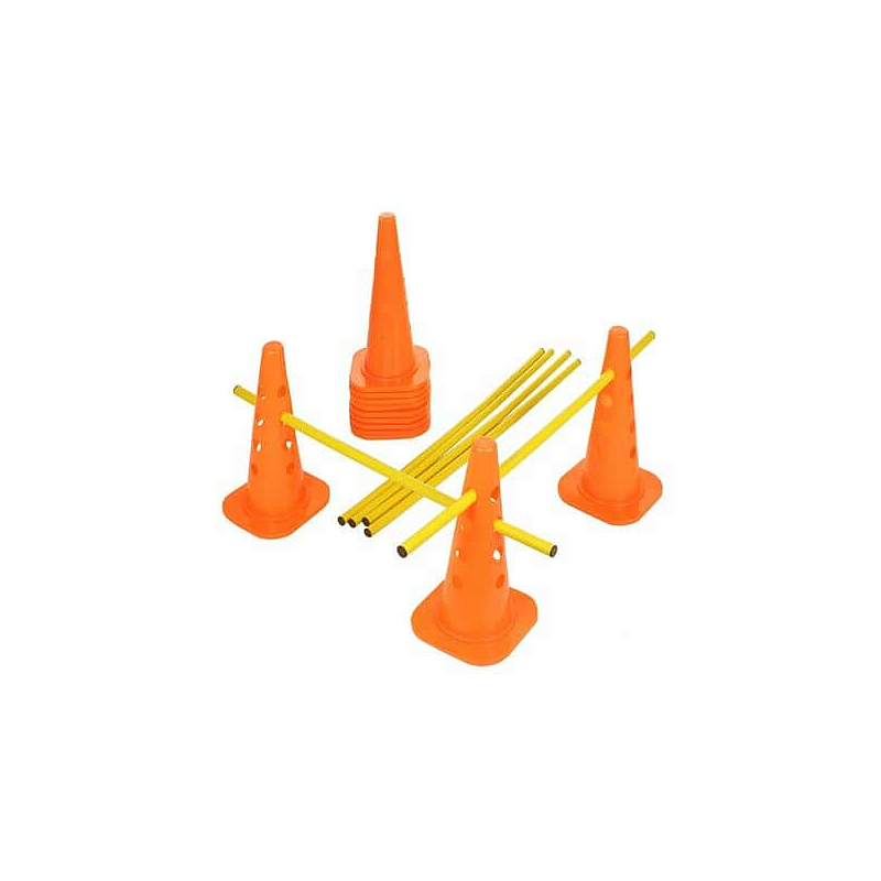 Součástí 12x kužel (46 cm) s dírami a 6x tyč...