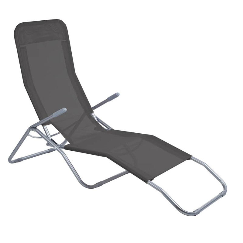 Skládací zahradní lehátko s područkami, materiál ocel (povrchová úprava prášková barva stříbrná) a umělá tkanina (polyester), nenasakující vodu. Zahradní lehátko je velmi pohodlné, nenáročné na skladování, vhodné na terasy, zahradu nebo kempování.