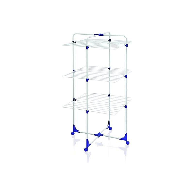 sušící plocha 34 m, možnost umístění do sprchového koutu, 3 patra,klip pro zavěšení dalších 6 ramínek, pro 3-4 pračky prádla,se 4 integrovanými kolečky pohyblivými do 360°,bílá, modrá