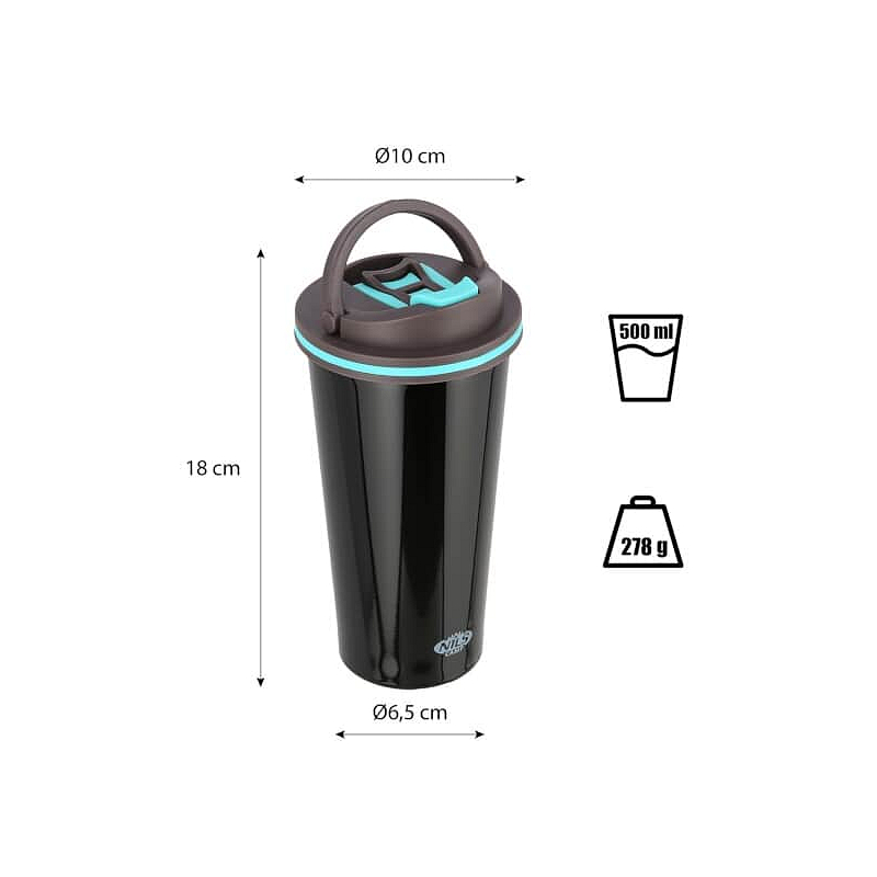 Termohrnek NILS Camp NCB18 se vyznačuje jednoduchou konstrukcí a originálním designem! Termohrnek je vyroben z nerezové oceli s dvojitou stěnou, která zaručuje uchování teplých nápojů po dobu 12 hodin a studených po dobu 24 hodin, nezáleží tedy, zda si do hrnku připravíte ranní kávu, kterou vypijete cestou do práce a nebo zda si do něj přelijete oblíbenou limonádu a vezmete si jej s sebou na několikahodinovou procházku do přírody, termohrnek udrží Váš nápoj ve správné teplotě. Model NCB18 má velmi pohodlný systém otevírání. Stačí zatáhnout za páčku a je hotovo. Silikonový výlisek ve víčku zamezuje rozlití nápoje, pokud je hrnek zavřený. Další velkou výhodou je, že spodní část hrnku je opatřena protiskluzovou gumou, která zvyšuje bezpečnost před rozlitím horké kávy nebo čaje, když je hrnek otevřený!