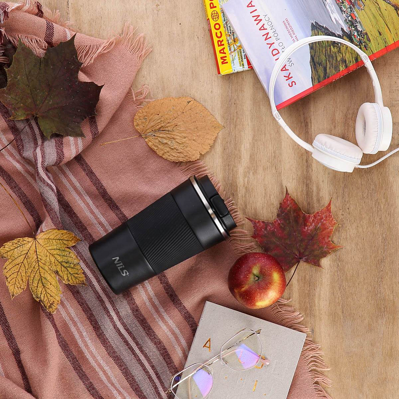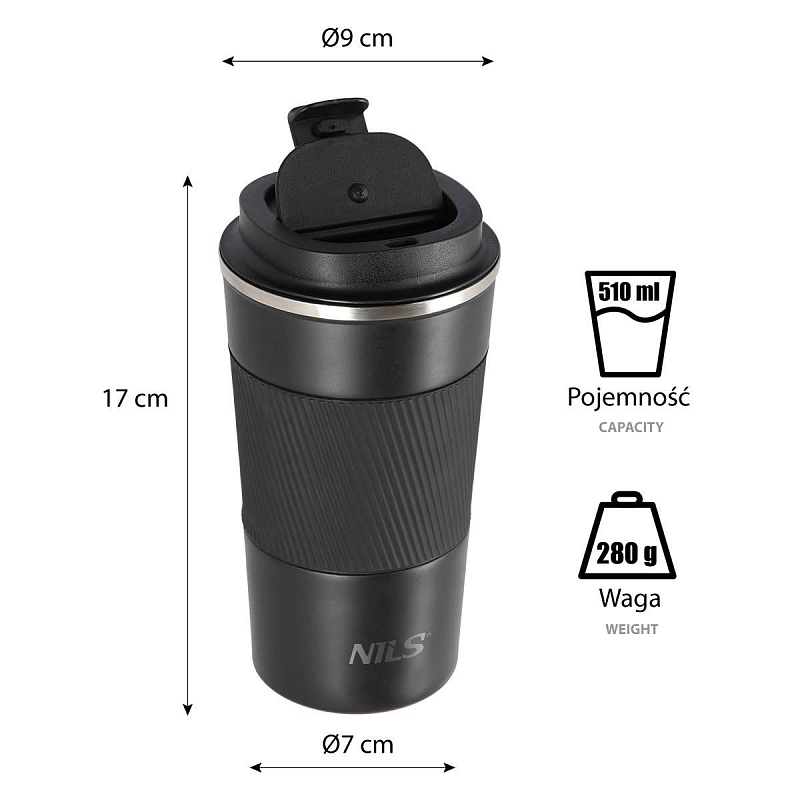 Termohrnek NILS Camp NCC09 se vyznačuje jednoduchou konstrukcí a originálním designem! Termohrnek je vyroben z nerezové oceli s dvojitou stěnou, která zaručuje uchování teplých nápojů po dobu 12 hodin a studených po dobu 24 hodin, nezáleží tedy, zda si do hrnku připravíte ranní kávu, kterou vypijete cestou do práce a nebo zda si do něj přelijete oblíbenou limonádu a vezmete si jej s sebou na několikahodinovou procházku do přírody, termohrnek udrží Váš nápoj ve správné teplotě. Model NCC09 má velmi pohodlný systém otevírání. Stačí zespodu zatlačit na víčko a je hotovo. Silikonový výlisek ve víčku zamezuje rozlití nápoje, pokud je hrnek zavřený. Další velkou výhodou je, že spodní část hrnku je opatřena protiskluzovou gumou, která zvyšuje bezpečnost před rozlitím horké kávy nebo čaje, když je hrnek otevřený!