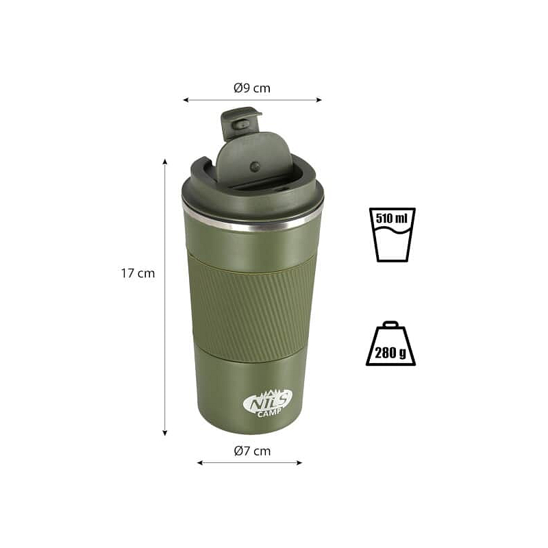 Termohrnek NILS Camp NCC09 se vyznačuje jednoduchou konstrukcí a originálním designem! Termohrnek je vyroben z nerezové oceli s dvojitou stěnou, která zaručuje uchování teplých nápojů po dobu 12 hodin a studených po dobu 24 hodin, nezáleží tedy, zda si do hrnku připravíte ranní kávu, kterou vypijete cestou do práce a nebo zda si do něj přelijete oblíbenou limonádu a vezmete si jej s sebou na několikahodinovou procházku do přírody, termohrnek udrží Váš nápoj ve správné teplotě. Model NCC09 má velmi pohodlný systém otevírání. Stačí zespodu zatlačit na víčko a je hotovo. Silikonový výlisek ve víčku zamezuje rozlití nápoje, pokud je hrnek zavřený. Další velkou výhodou je, že spodní část hrnku je opatřena protiskluzovou gumou, která zvyšuje bezpečnost před rozlitím horké kávy nebo čaje, když je hrnek otevřený!