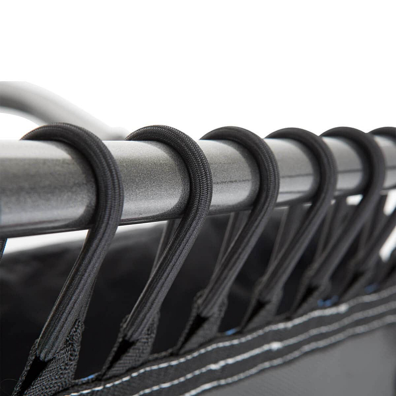 Elastické šňůry prvotřídní kvality ElastoPro nabízejí super silnou a rovnoměrně rozloženou pružnost a zajistí vaši bezpečnost během tréninků. Trampolína HAMMER Fitness Cross Jump má dlouhou životnost zajištěnou použitými materiály jak na elastické šňůry, tak i vlastní skákací plochu, které navíc prošly zátěžovými testy s více než 200 000 simulací skoků. Nosnost trampolíny je až 130 kg.