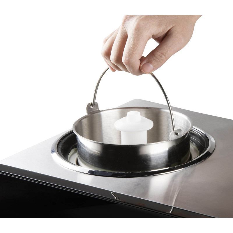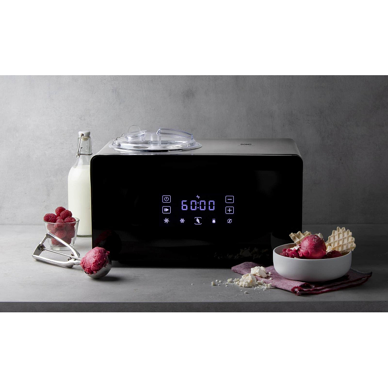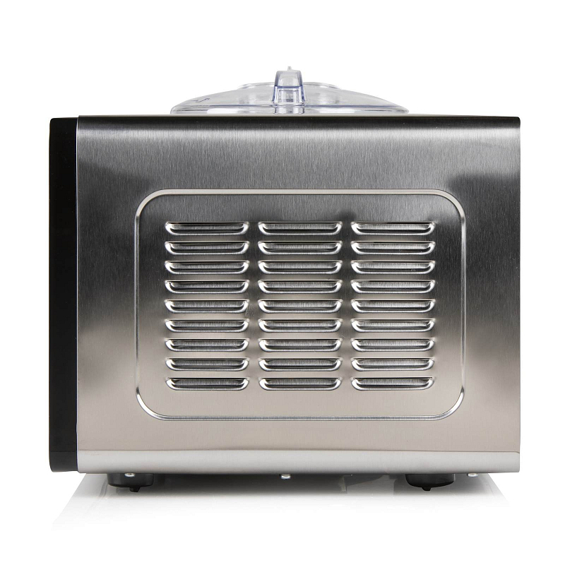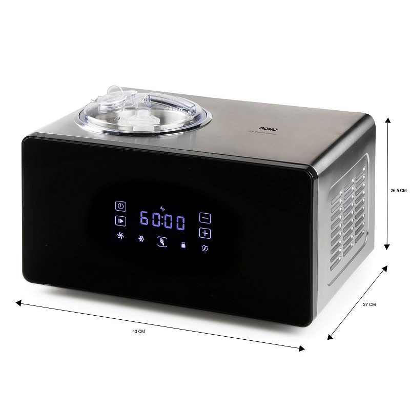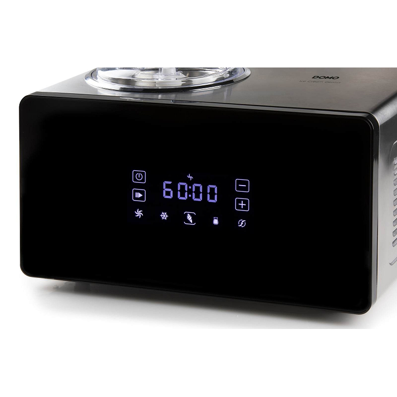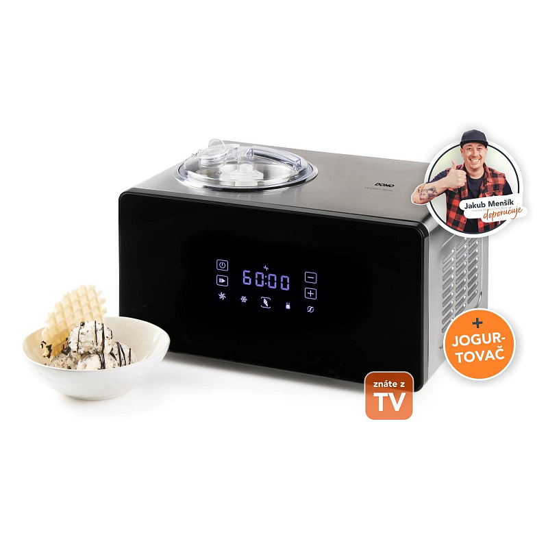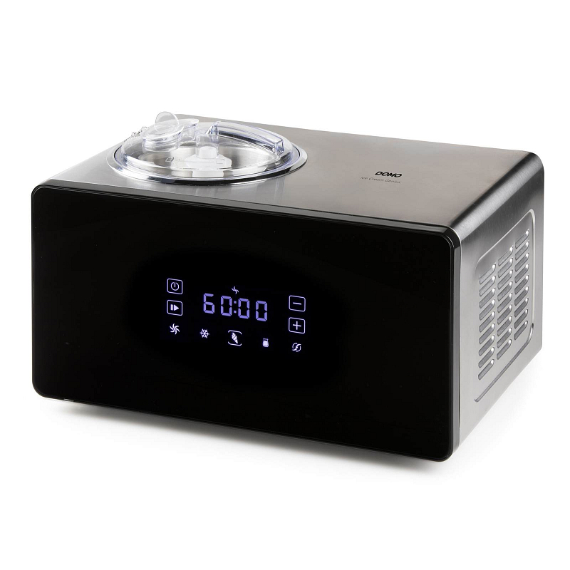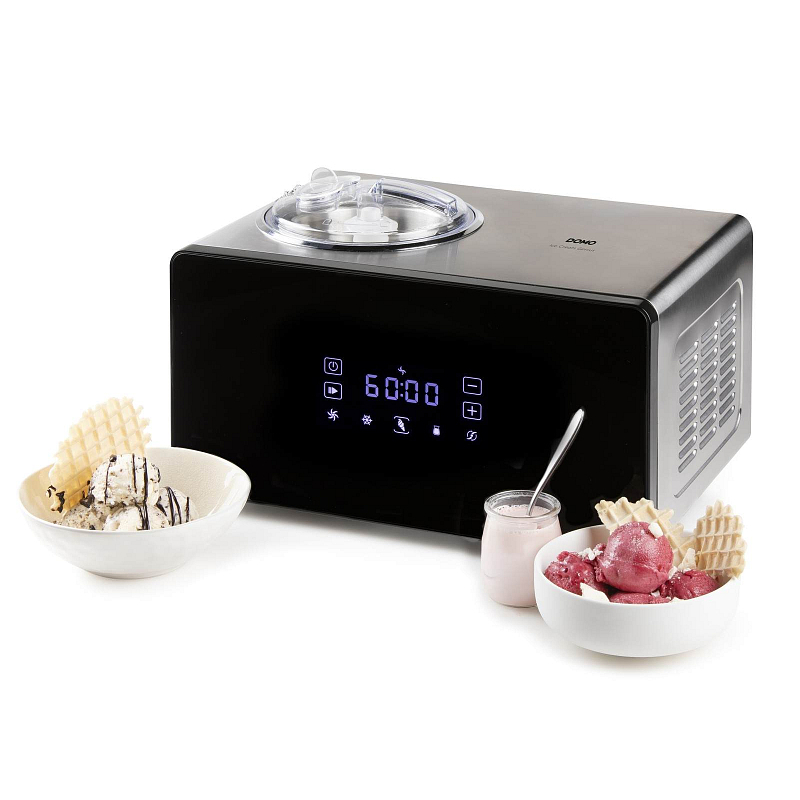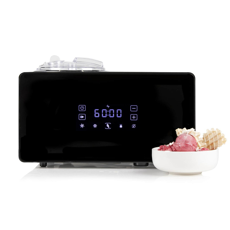 Samochladící domácí zmrzlinovač v moderním designu s velkým dotykovým panelem a nerezovým tělem. Zmrzlinovač umí připravit do 60 minut až 1,5 litru zmrzliny a následně zmrzlinu dále udržovat další 2 hodiny vychlazenou.