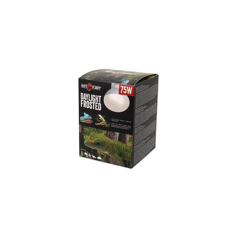 Žárovka REPTI PLANET Daylight Frosted poskytuje optimální poměr ultrafialového UVA záření, světelného záření a infračerveného (tepelného) záření a je ideální v kombinaci s UVB a nočními žárovkami (např. Repti Planet Repti UVB, Infrared Heat, Night Heat). Jedná se o širokospektrální žárovku, která podporuje fyziologické procesy jako je např. aktivita, příjem potravy a rozmnožování. Studené barevné spektrum imituje světlo v tropických oblastech a deštných pralesích. Žárovka je vhodná např. pro tropické žáby, gekony a ještěry.