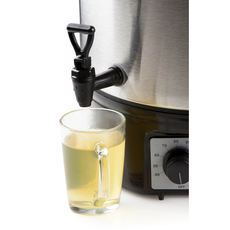 Zavařování není jen sezonní záležitost. Kromě klasického zavařování ve sklenicich, lze hrnec využít i pro velkoobjemové vaření (polévky, šťávy ...). Objemný hrnec (27 litrů) v kombinaci s výpustným kouhoutem nahradí i výdejník nápojů při velkých akcích. Díky nastavitelnému termostatu můžou být vydávané nápoje stále teplé.