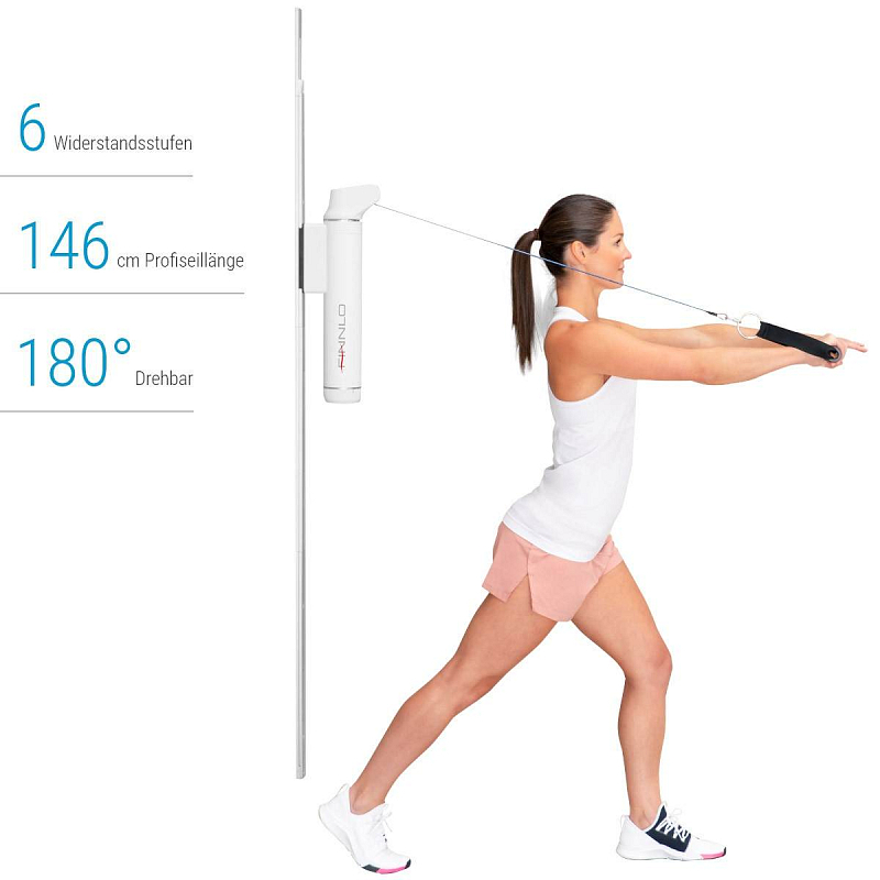 FINNLO CABL patří momentálně k nejkompaktnějším trenažérům pro vaši domácí posilovnu. Stroj nabízí 6 úrovní odporu, flexibilní nastavení výšky, lano o délce 146 cm s možností otáčení o 180°, to vše zajistí komplexní trénink s minimálními nároky na prostor a bez ohledu na vaši momentální fyzickou kondici nebo případný handicap. Je to ideální cvičební pomůcka i pro vozíčkáře.