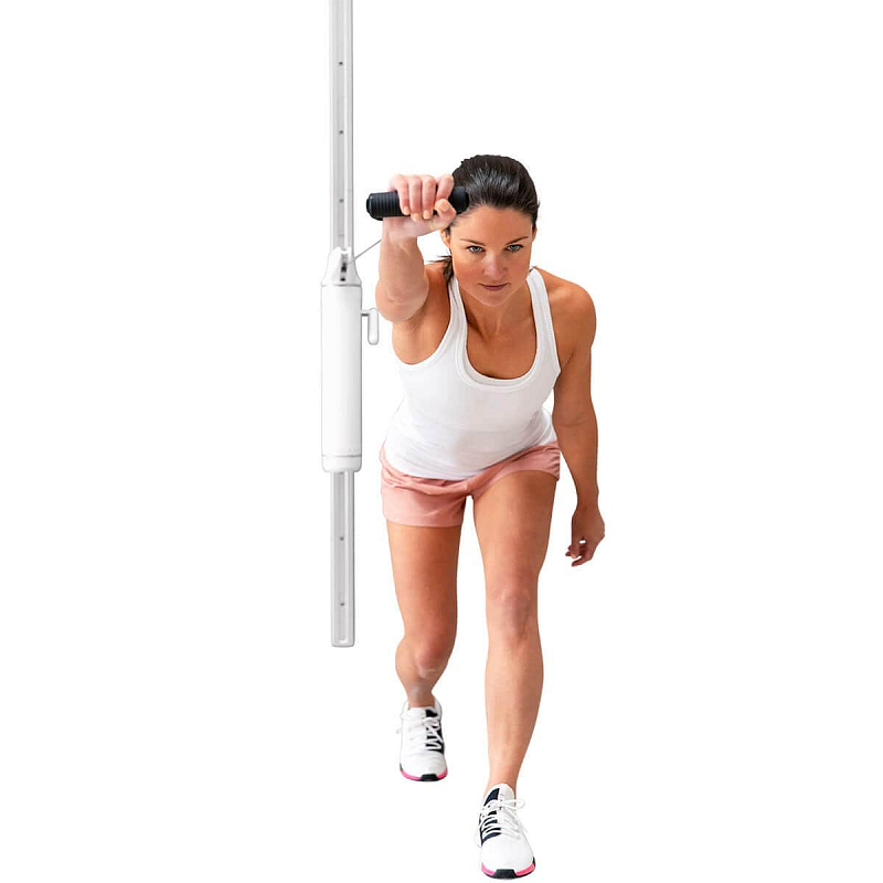 Trenažér disponuje extrémně pevným a přesto tenkým lanem, úchopovým madlem do ruky, popruhem na nohu, tricepsovým adaptérem. Dále také montážní sadu, která zahrnuje 6mm vrták, hmoždinky a šrouby.