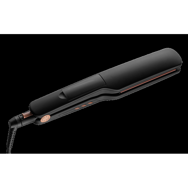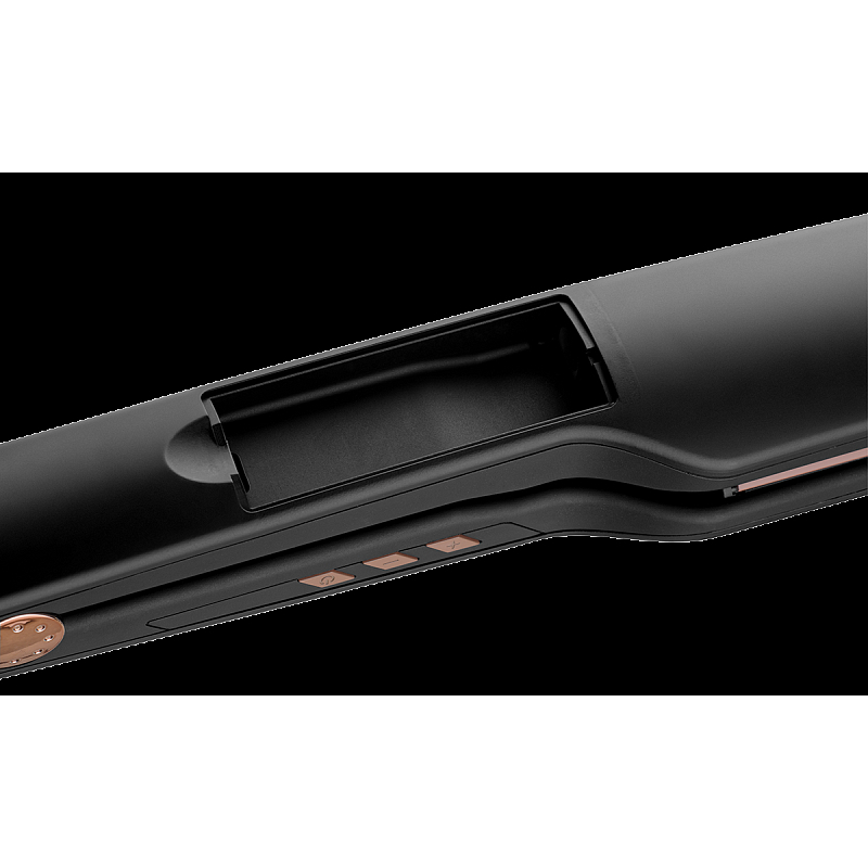 Žehlička nabízí výběr z 5 teplotních stupňů, takže je vhodná jak pro jemné vlasy, tak i pro silné a kudrnaté. Aktuálně nastavenou teplotu můžete sledovat na přehledném LED displeji. Pro zvýšení bezpečnosti je opatřena funkcí automatického vypnutí po 60 minutách nečinnosti. Součástí žehličky je i ochranné cestovní pouzdro a zámek na uzamčení žehlicích ploch, který chrání povrch desek před poškrábáním.