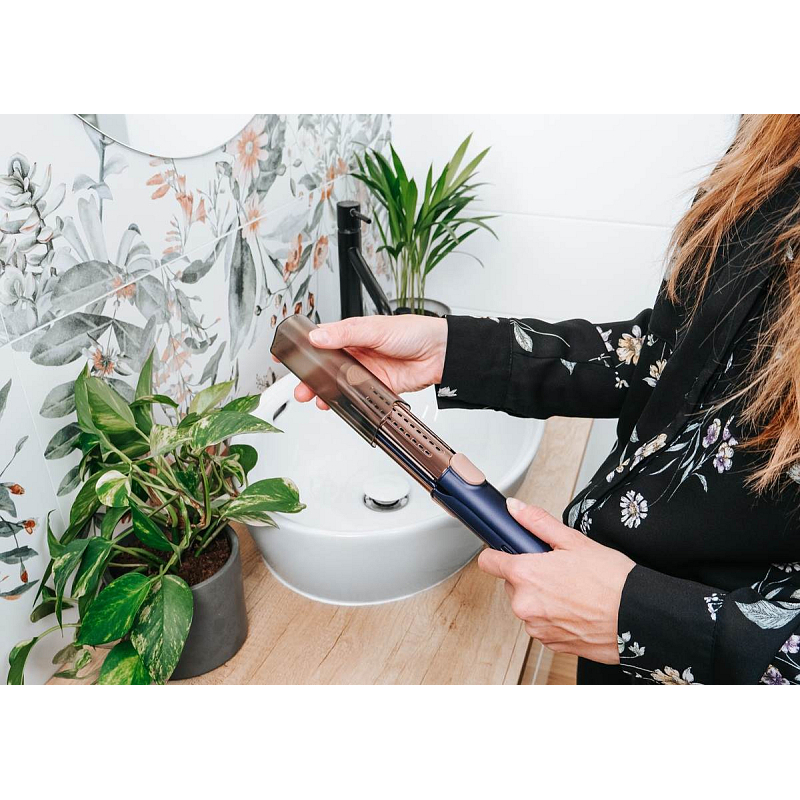 Žehlička na vlasy s technologií CoolAir nabízí inovativní způsob úpravy vlasů pomocí studeného vzduchu. Po zahřátí pramene dochází k jeho okamžité fixaci, která účes pevně uzamkne a prodlužuje jeho výdrž. Studený vzduch navíc pomáhá uzavřít kutikuly vlasů, čímž zachovává jejich přirozenou vlhkost, zvyšuje lesk a hladkost vlasů. Díky tomu je žehlení s funkcí studeného vzduchu výrazně šetrnější než klasické žehlení pouze horkými deskami. Technologie CoolAir je ideální volbou pro ty, kdo chtějí dlouhotrvající účes bez zbytečného zatížení či poškození vlasů.